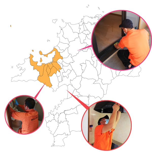 営業エリア内は交通費、出張費、諸経費や汚れの上下などによる追加料金をいただく事も一切ございませんのでご安心下さい。