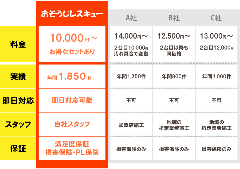 おそうじのプロの清掃を、業界最安水準のお値段でご提供致します。おトクなセットプランも充実しています。